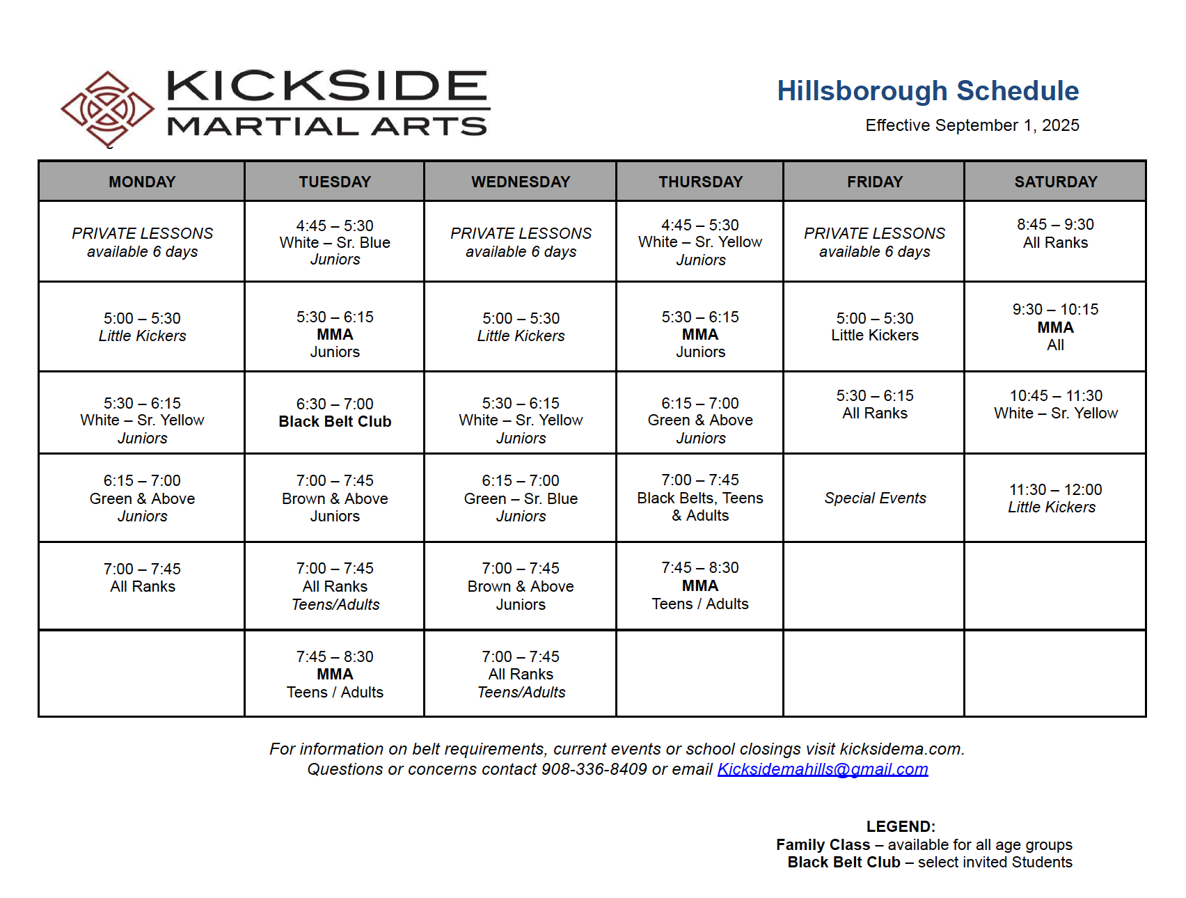 [ Below is the Fall 2025 Hillsborough class schedule, effective September 2, 2025